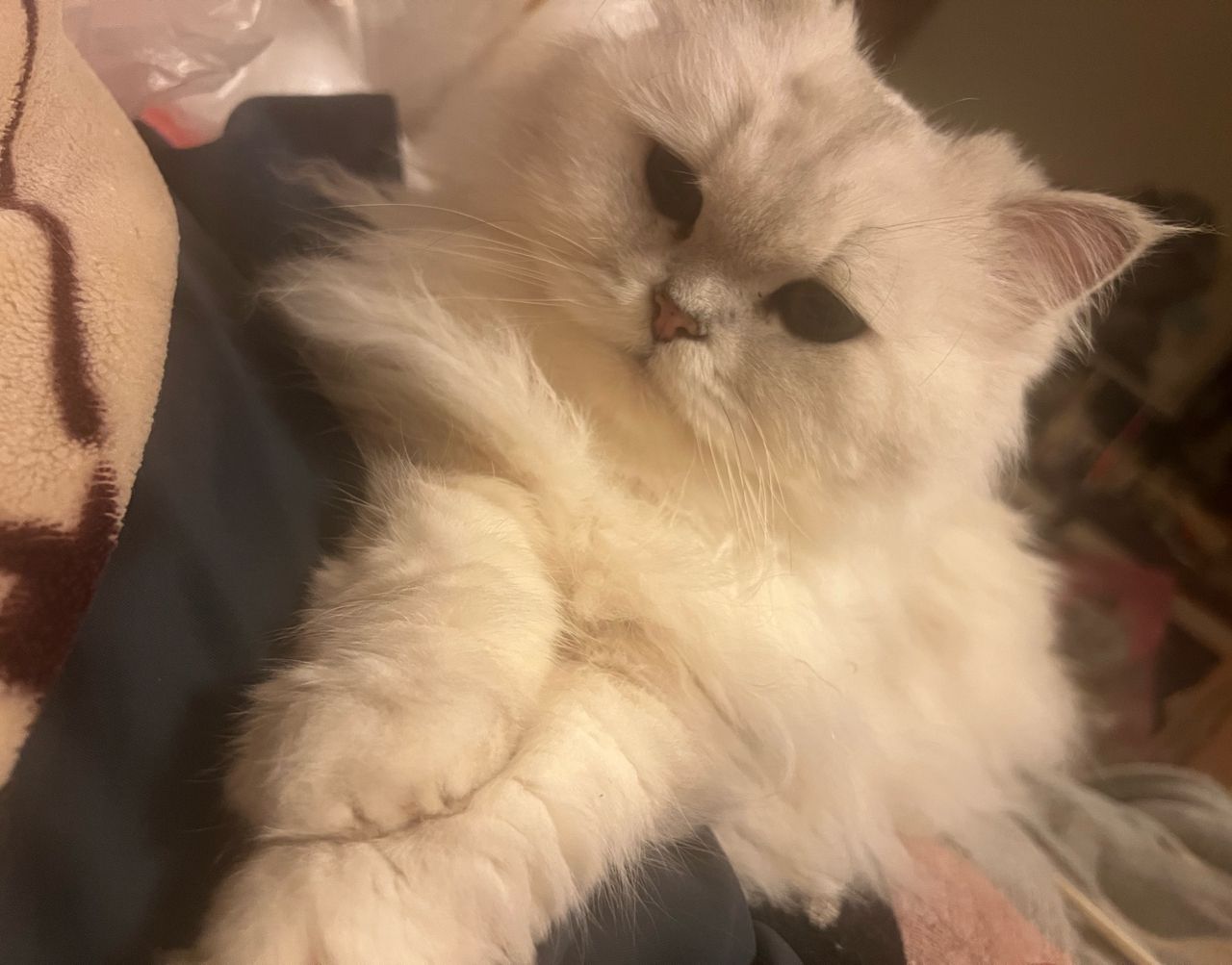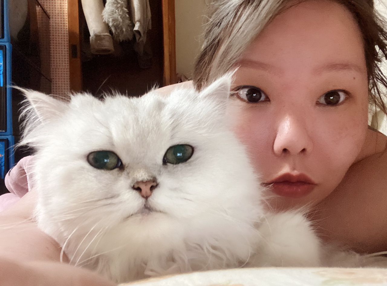 家裡有一隻 14~15歲的白貓,暱稱 毯子,是家裡的女王。
