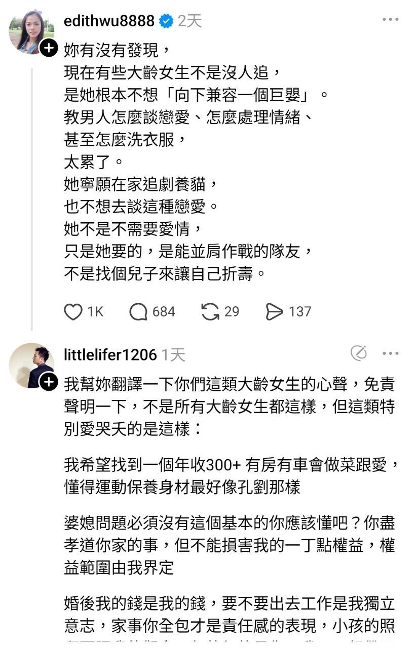 : 但搜了一下,他在男女版最後一篇發文是2025/3/31。