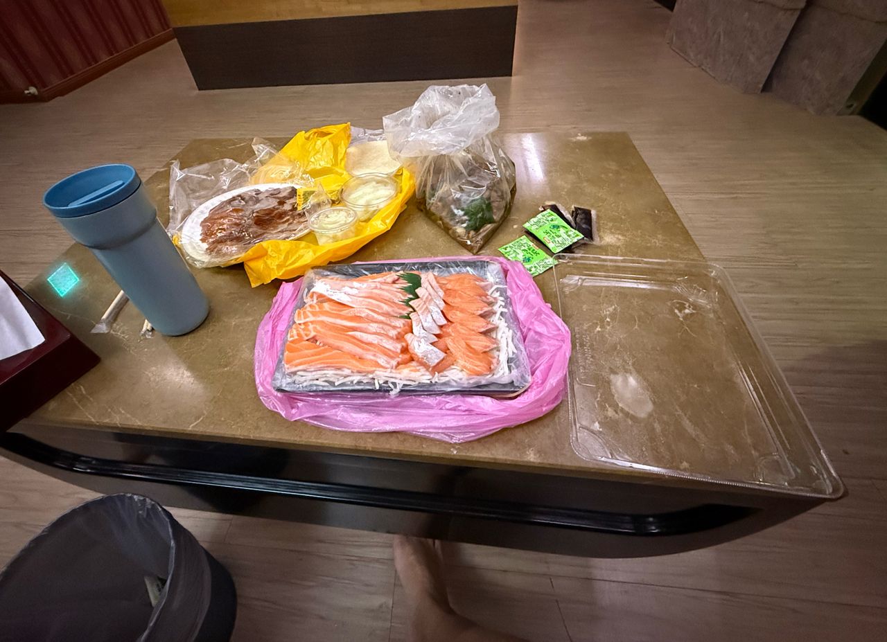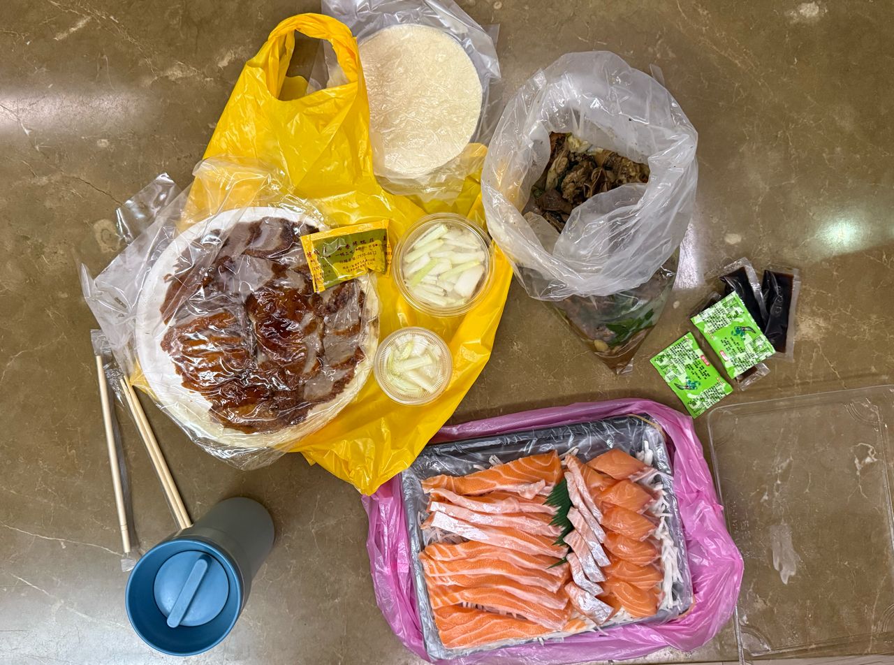 只有鮭魚生魚片/烤鴨小辣還加高麗菜