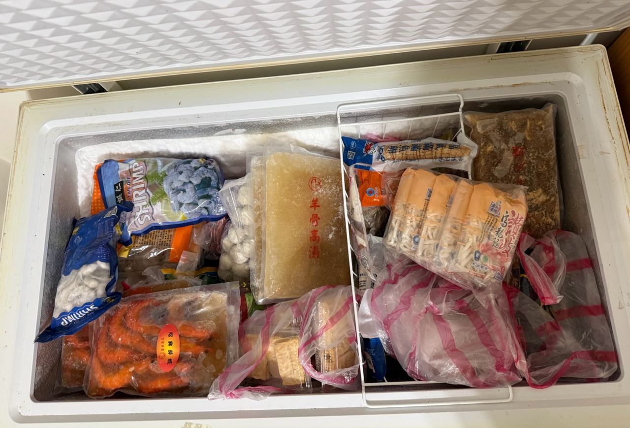 「冷凍庫滿了,滿滿的肉品...」我說