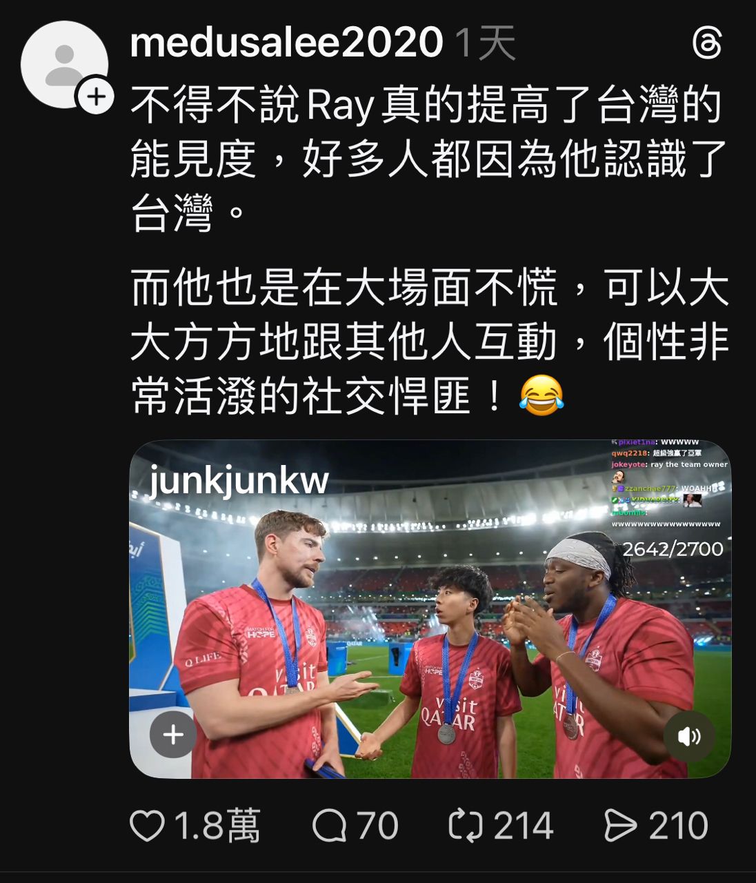 [討論] 脆熱議:Ray真的提高了台灣的能見度!已刪文