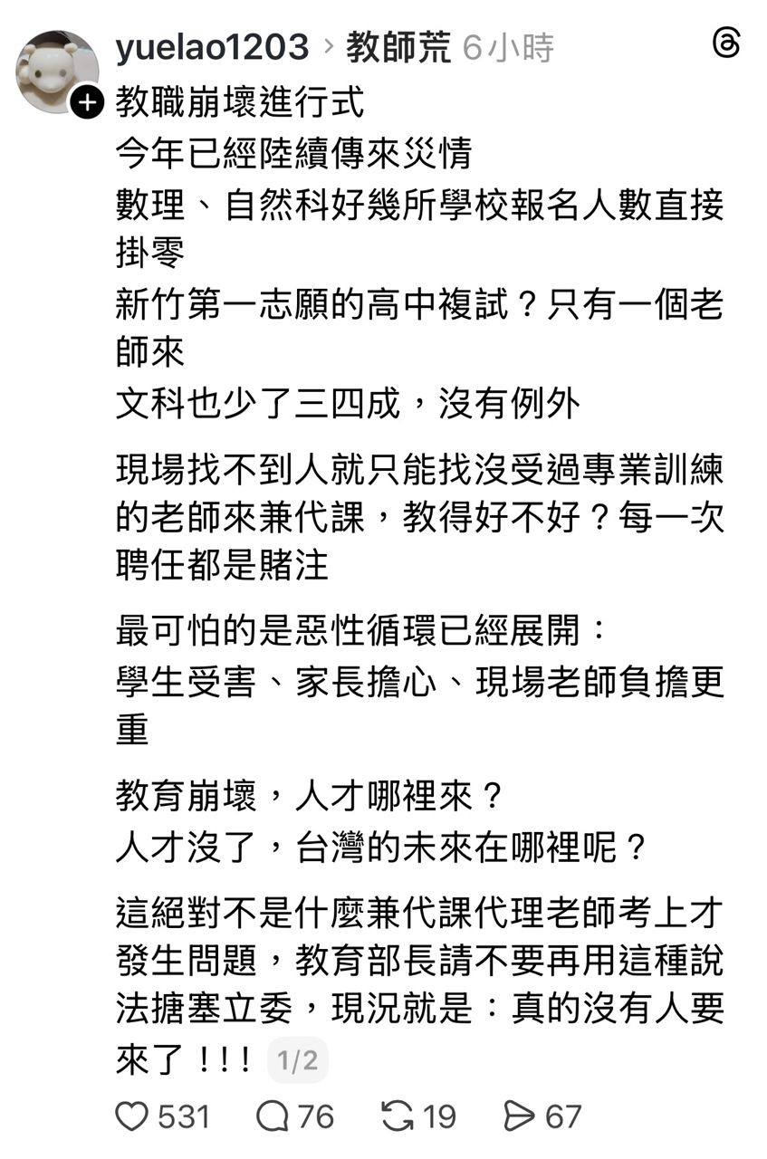 [閒聊] 教師荒