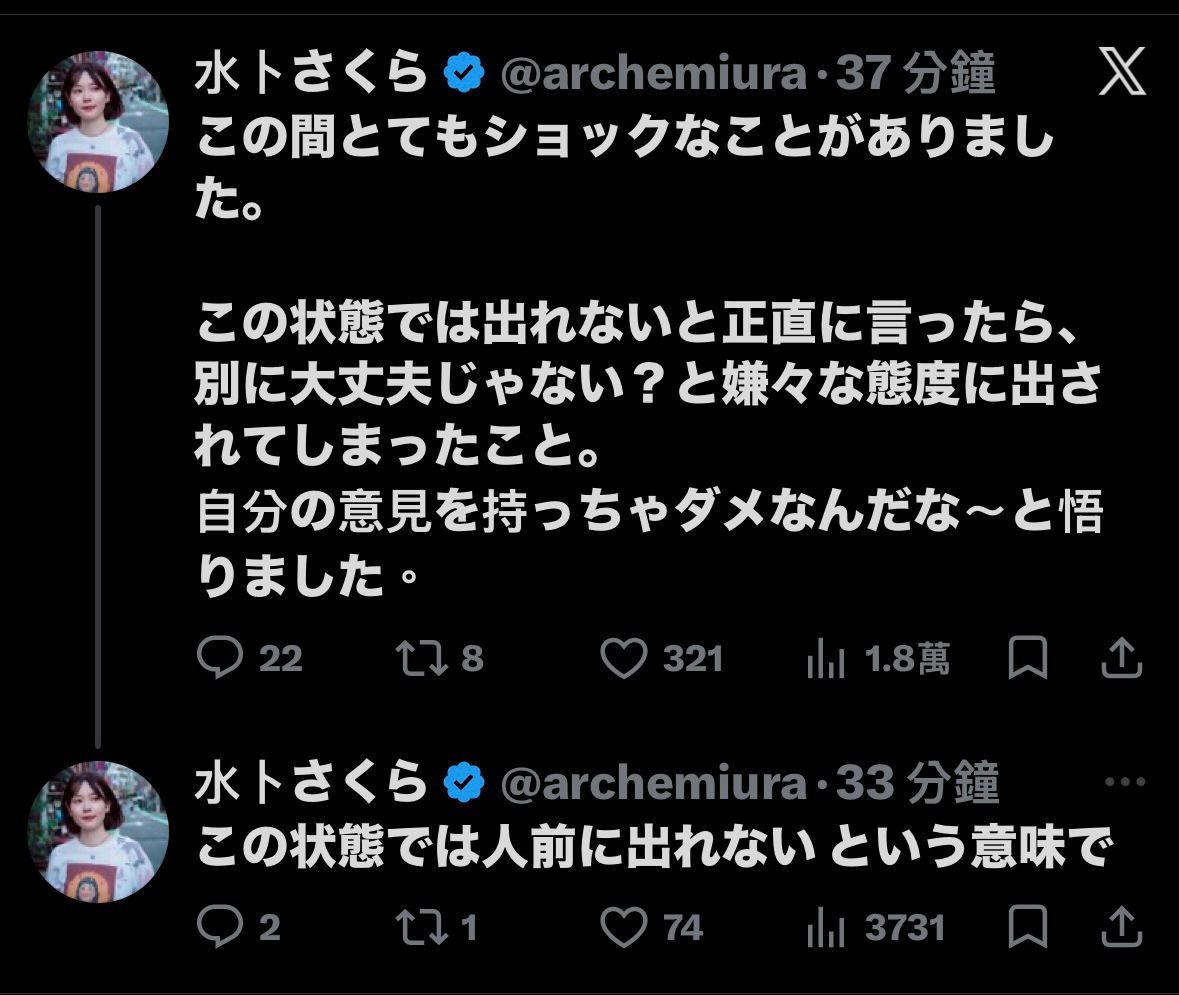 [討論] 水卜櫻怎麼了 X PO一篇很奇怪的文章