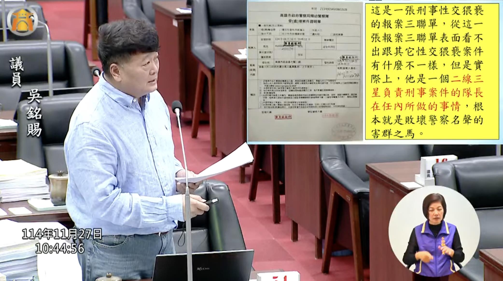 件進展緩慢,疑似警方介入阻擋,市議員吳銘賜接獲陳情後怒批「警察局對性騷擾(猥褻