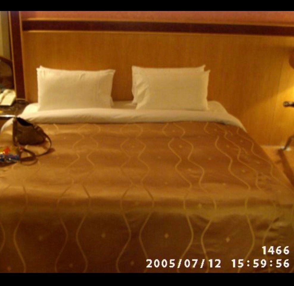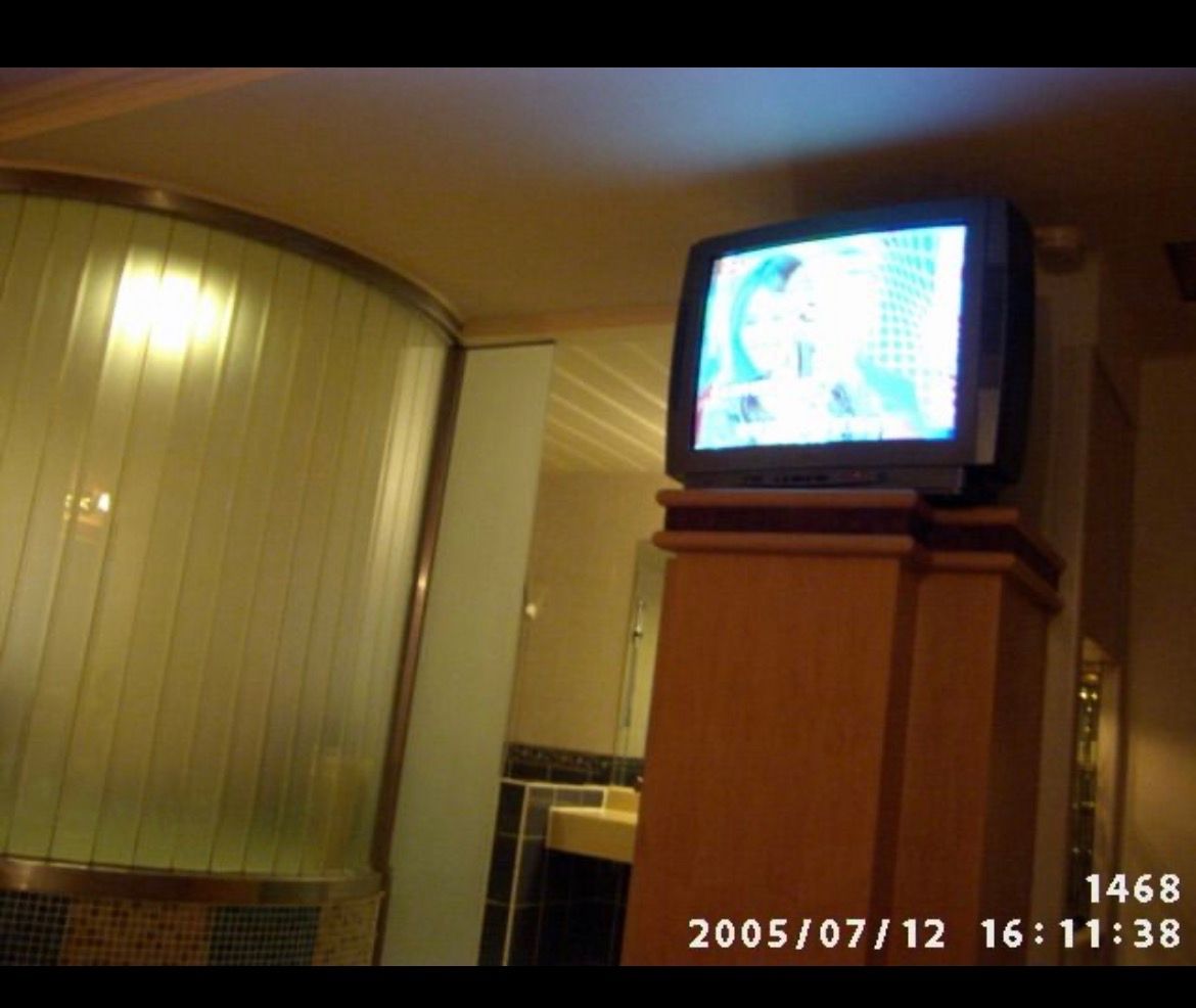 幹超屌第一次看到旅館電視放在不知道是不是櫃子的上面,床上同時可以看到電視跟旁邊