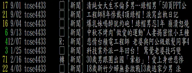 PTT兩性男女區 即時熱門文章